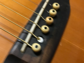 弦替えようとしたら折れた。何十年ものだろ。とりあえず折れたの刺しておいた。