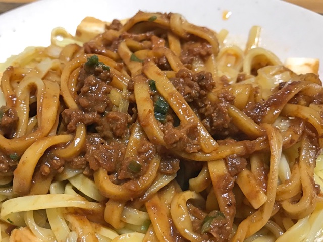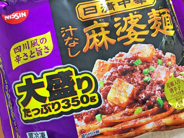 投稿日: 2018年10月15日2018年10月15日さすが日清さん ありましたよ冷凍麻婆麺。汁なしだけどね。量もたっぷり。レンチンでok。 見た目はあれですけど、味は抜群。辛さ調節用の唐辛子と花椒ミックス小袋もあり。平打ち麺は具の絡みを考えるとベストチョイスなのかな?