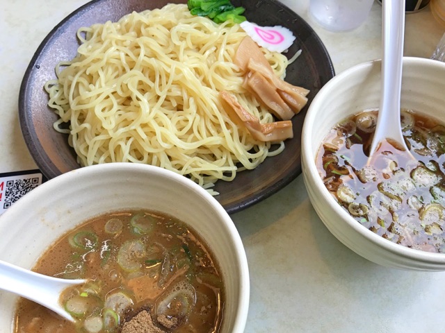 投稿日: 2018年12月1日2018年12月1日2つ分 幸楽苑なんぞに行ってみました。一時は危うくなったようですが、そこそこ人は入ってます。今日からオススメのこれ。普通のつけ麺と濃厚魚介つけ麺の両方のスープがついて麺がダブル。途中で飽きなくていいね。ホントは濃厚魚介は太麺がいいんですがしょうがない。 最後は混ぜるることで3種類のスープになるらしい。当然やりましたとも。
