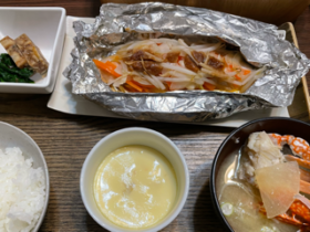 さてさて、今日は鮭のちゃんちゃん焼きと茶碗蒸し。
