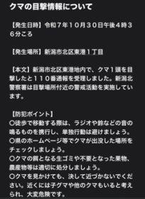 ついに新潟市内にまでクマ出没かよ。マジやばい。