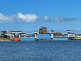 通り道を狭くして水の速さを高めることで海水の逆流を防ぐんだ。流体力学だね。