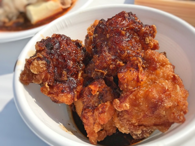 投稿日: 2018年5月27日2018年5月27日 投稿者: はちごろう陽が高いのに 萬代橋下流のやすらぎ堤で、フードソニックなるイベントやってるというので行ってみました。まずは一杯。(^.^) 麻婆豆腐ですが、切ってない豆腐の上に麻婆とバラ肉。いいんですが、これで1000円。唐揚げは甘辛ソースがかかった中サイズで1200円。カレーはそれでも良心的な600円。おいしいけど、何か具をトッピングしてくれ。 この後ラブラで知り合いにあったので声かけたら、「日焼けですか?」「いやいや、呑んでたんです。」はずーかし。