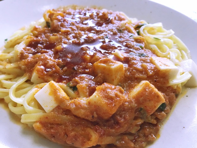 投稿日: 2019年3月18日2019年3月18日 投稿者: はちごろうそれほどでも セブンでまた例の豚ラーメン買おうと思ったんですが、冷凍庫に蒙古タンメン中本 汁なし麻辛麺なるものを発見してしまいました。チンするだけ。 追加の辛味を入れたけどまぁまぁですね。前に食べた冷凍麻婆麺の方がいいな。量ももうちょいほしい。