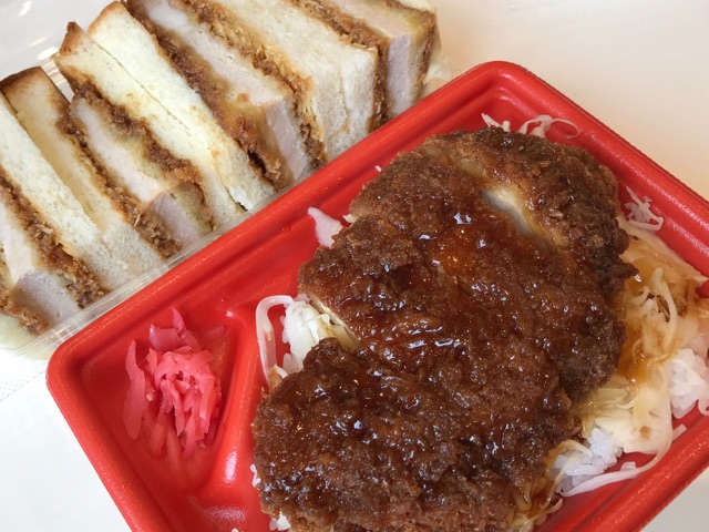 今日の昼ごはん。ソースカツ丼とカツサンド。