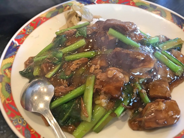 なんだかご飯の気分。牛肉のぶつ切りあんかけご飯らったかのー。八角の香りが強いよ。 広来飯店ね。