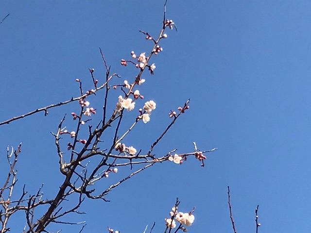 その辺にある梅が花をつけ始めました。天気もいいし、のんびりな休日。昼寝もたっぷりしちゃったよ。運動せねば。