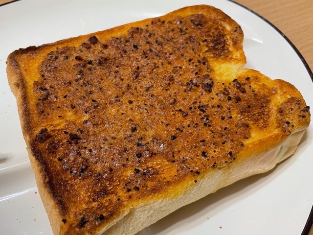ぬって焼いたらカレーパンをゲット!棚ではなくて、入り口近くにドサっと置いてありました。塗っただけでは黄色ペーストだけど、焼くと焦げて香ばしい香りが部屋いっぱいに広がります。