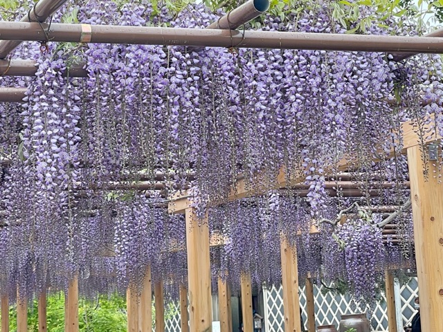 北方文化博物館の藤の花。大雪で藤棚が倒壊したそうですが、無事復活。藤棚といえばクマンバチ。なぜ?