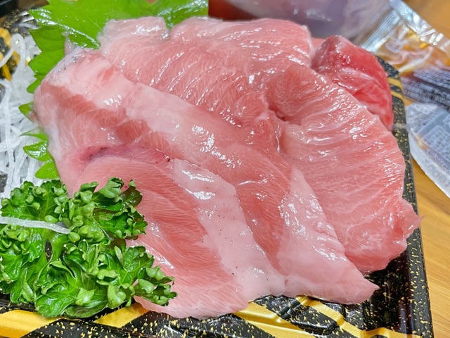 投稿日: 2021年10月2日2021年10月3日 投稿者: はちごろうマグロが安い スーパー行ったら、国産マグロがいっぱい並んでて、なおかつ安い。国産だから冷凍してないのか、こんなほお肉までありました。回転寿司チェーンでもマグロいっぱいらしいし、養殖なんでしょか。 そのかわりサンマが見当たりません。秋はサンマかサケだよ。あー、サケはすでに季節感なくなってるな。サケじゃなくてサーモンか。