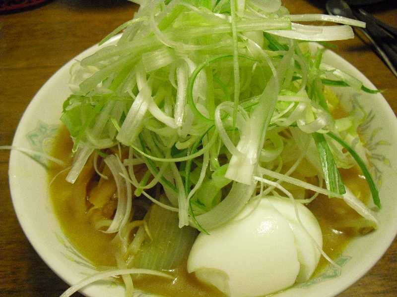 ということで,野菜たっぷり豚骨味噌ラーメンに,半熟たまご,メンマをトッピング。そこに大量のネギをエベレスト。