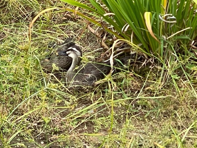 最初は8羽だったと思う。だんだん減ってきて今は2羽。カラスにさらわれたのかな。ここのカルガモは引っ越ししないようです。
