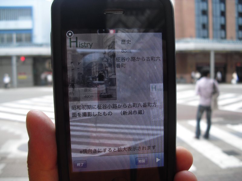 投稿日: 2011年8月20日2013年4月28日 投稿者: はちごろう新潟アプリ なんか,新潟の歴史とか観光とかをカメラの映像と一緒に見せてくれるアプリ。セカイカメラみたいなもんだね。 いかんせん,ポイントも情報も少ない。85か所だったかな?