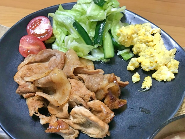 生姜焼きも入れると4色か。キャベツとキュウリはピクルスにしてかさを減らして大量消費。