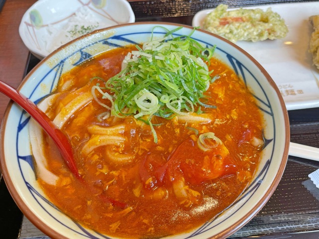 丸亀でトマ玉カレーうどん。割と辛くて汗出た。ミニライスがいいね。 1年以上来てなかった気がするけどなんでだろ。