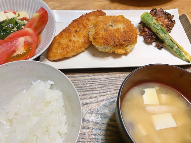 投稿日: 2024年10月11日2024年10月12日 投稿者: はちごろういろいろ試す 里芋のコロッケなるものをつくってみた。里芋好きなのだ。ねっとりしてウマし。左は冷凍の白身魚フライ。 右はバッター液が余ったのでオクラとネギのみじん切りを揚げてみた。