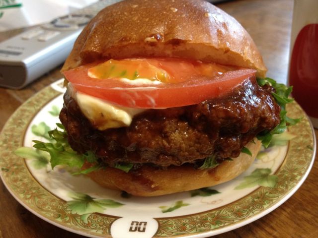 いつものスーパー青山バーガーと世界一おいしい目玉焼き。
