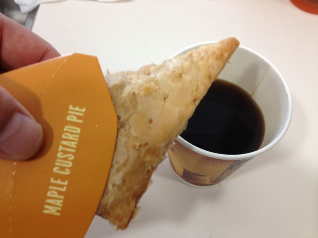 投稿日: 2012年2月20日2012年2月20日 投稿者: はちごろうメイプルカスタードパイ めずらしくマック。 目的は、今なら100円のプレミアムローストコーヒーですが、POPがあったのでたのんでみました。 メイプルシロップとカスタードクリーム。たまりまへんな。