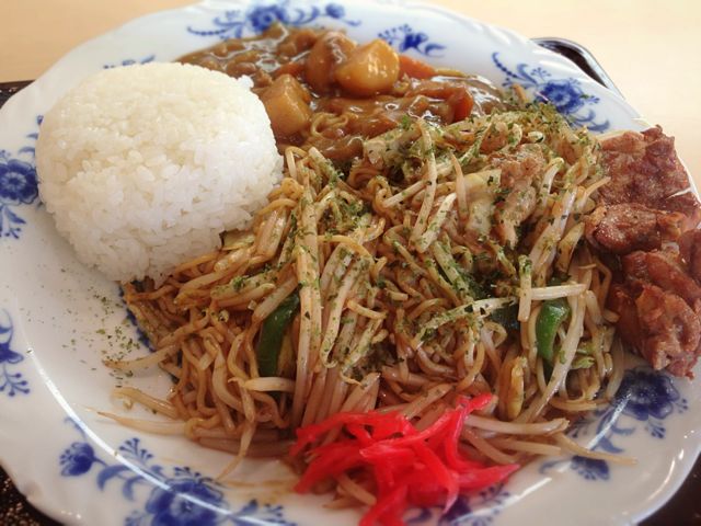 焼きそばにカレー、だけじゃなくてライスもあり。西区のにんたま食堂の焼きそばプレート(だったかな?)。