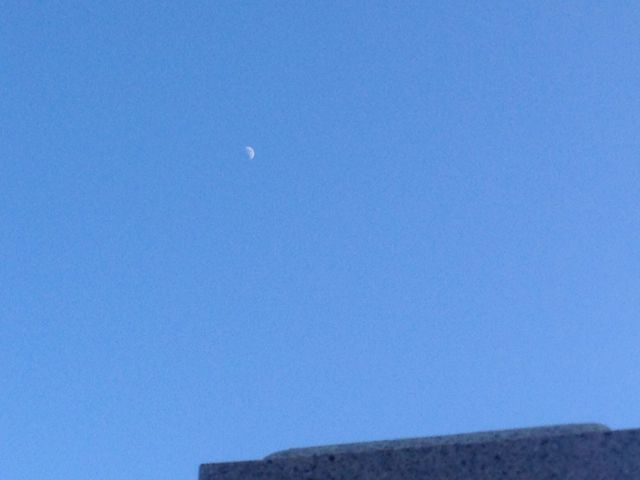 毎年恒例の墓参り。この場所は、何年経っても変わらないね。お墓の前で手を合わせたら、月が見えました。上弦の月だな。