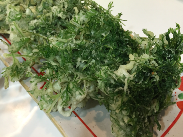 投稿日: 2014年11月5日2014年11月5日 投稿者: はちごろうモジャモジャかき揚げ さーて、やっとベランダのニンジンの出番です。15〜20センチくらいのほどよい大きさになったので、間引きも兼ねてハサミでチョキチョキ。 サラッと衣をつけてサッと揚げます。サクサクで香ばしい。最後はやっぱりかき揚げ丼にしちゃいました。